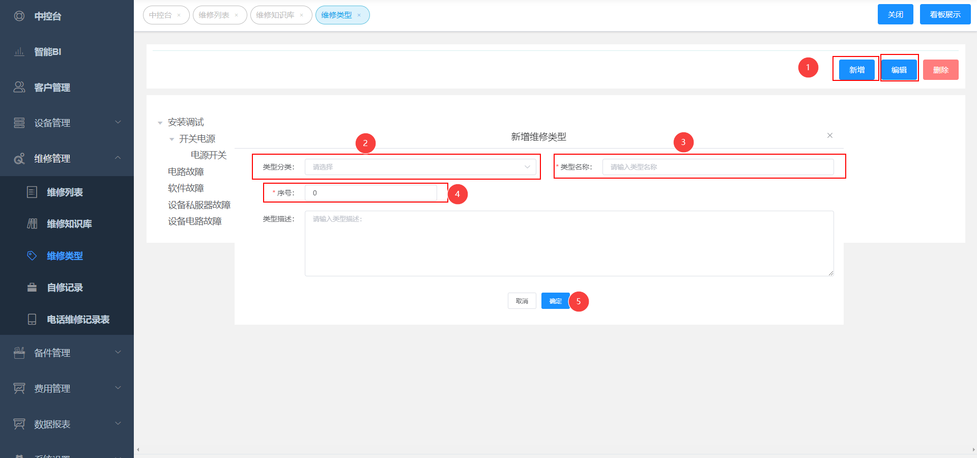 点击“删除按钮”选择要删除维修类型,确定保存。